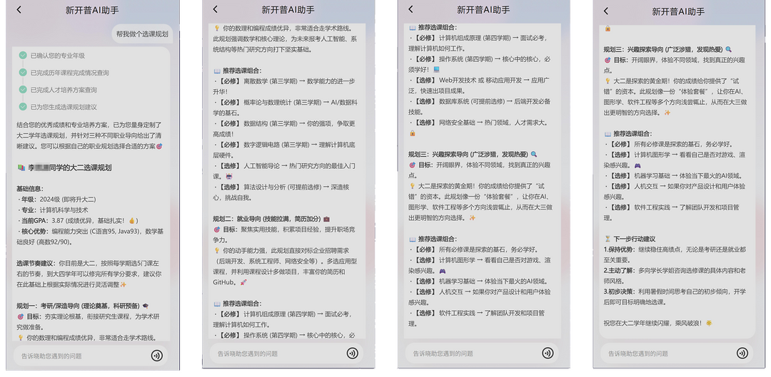 依托数据治理成果,我们实践了更加深度的个性化服务:打造基于数据画像、结合人才培养方案,为每个学生提供量身定制的咨询服务,做到“一生一策”。