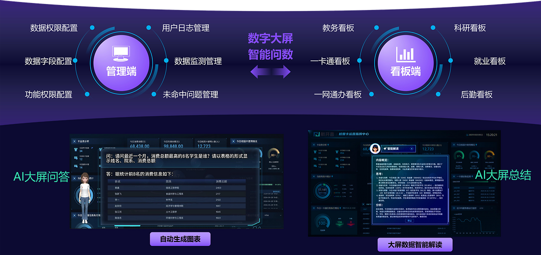AI大屏总结:自动生成日、月、季度等多维度数据解读与洞察报告,帮助管理者快速发现潜在风险与数据波动。