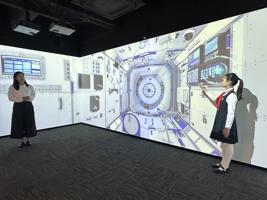 神舟二十一号载人飞船将于今晚飞向太空,而在上海市黄浦区曹光彪小学,孩子们不出校园,就提前进入了“天和核心舱”。在一个名为“星空入梦”的AIGC沉浸式体验空间内,孩子们被3面大屏环绕,仿佛置身寰宇。平日里遥远的航天器变得触手可及,可以看得真切;每个人也能“走”到天和核心舱内部,通过虚拟操作探究太空实验奥秘。