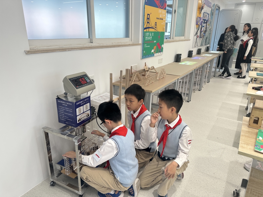 “创新人才的培养不能靠单一的学科学习,让每个孩子都努力成为敢想、敢试、敢创造的‘小小工程师’。”校长卢雨介绍,新建的曹光彪小学“小小工程院”除了开设“航天工程设计营”,还开设了“桥梁工程师探索营”和“3D打印智造工程师实践营”,满足孩子不同的喜好和特长。在这里,小“智造工程师”们通过不断优化语言指令,指挥AI读懂脑中途径,并通过3D打印实现“创意物化”;小“桥梁工程师”们可以将“港珠澳大桥”“外白渡桥”等桥梁模型摆上桥梁工程数智沙盘,了解背后的结构奥秘,再用木条搭建自己的桥梁模型,并通过压力测试仪验证模型结构强度;智能剪纸机降低创作门槛,让更多学生完整经历“设计—制作—测试—优化”全流程。